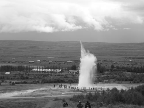 Ueber den gigantischen Wasserfall Gullfoss geht es zum Geysir Strokkur. Stundenlang betrachten wir ihn... das Blubbern, Gurgeln, das langsame Aufsteigen und wir erschrecken jedes Mal wieder, wenn er dann urplötzlich als 20 Meter hohe Wassersæule in die Höhe schiesst. Einfach faszinierend.