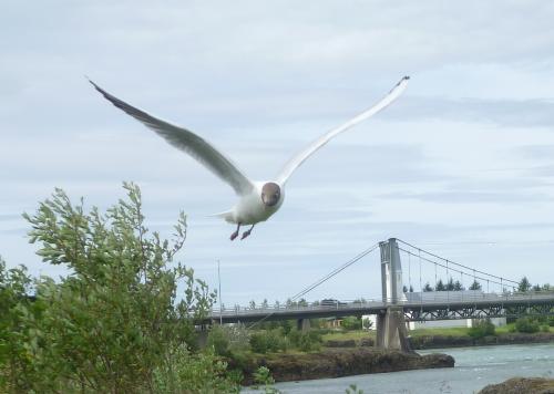 (Diese dreiste Lachmöwe leistete uns beim Mittagessen in Sellfoss Gesellschaft)